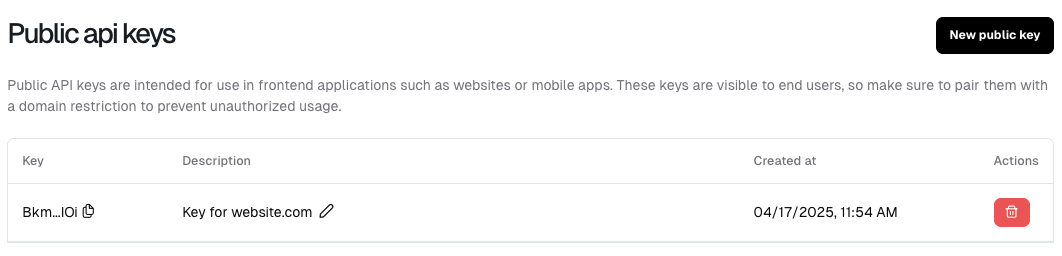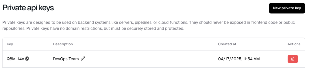 Best Practices for API Key Management Adding Descriptions Always add clear descriptions to your API keys to help identify their purpose. Good examples include:
