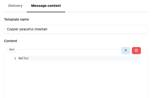 You create one message template using our visual builder with blocks. MsgGO automatically converts this template to the appropriate format for each delivery platform: HTML for email, Markdown for Slack/Discord, summaries for SMS, and more.