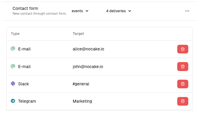 Switch from Slack to Telegram or add Discord without changing a single line of code. Update your delivery targets in the UI and keep your integrations working.